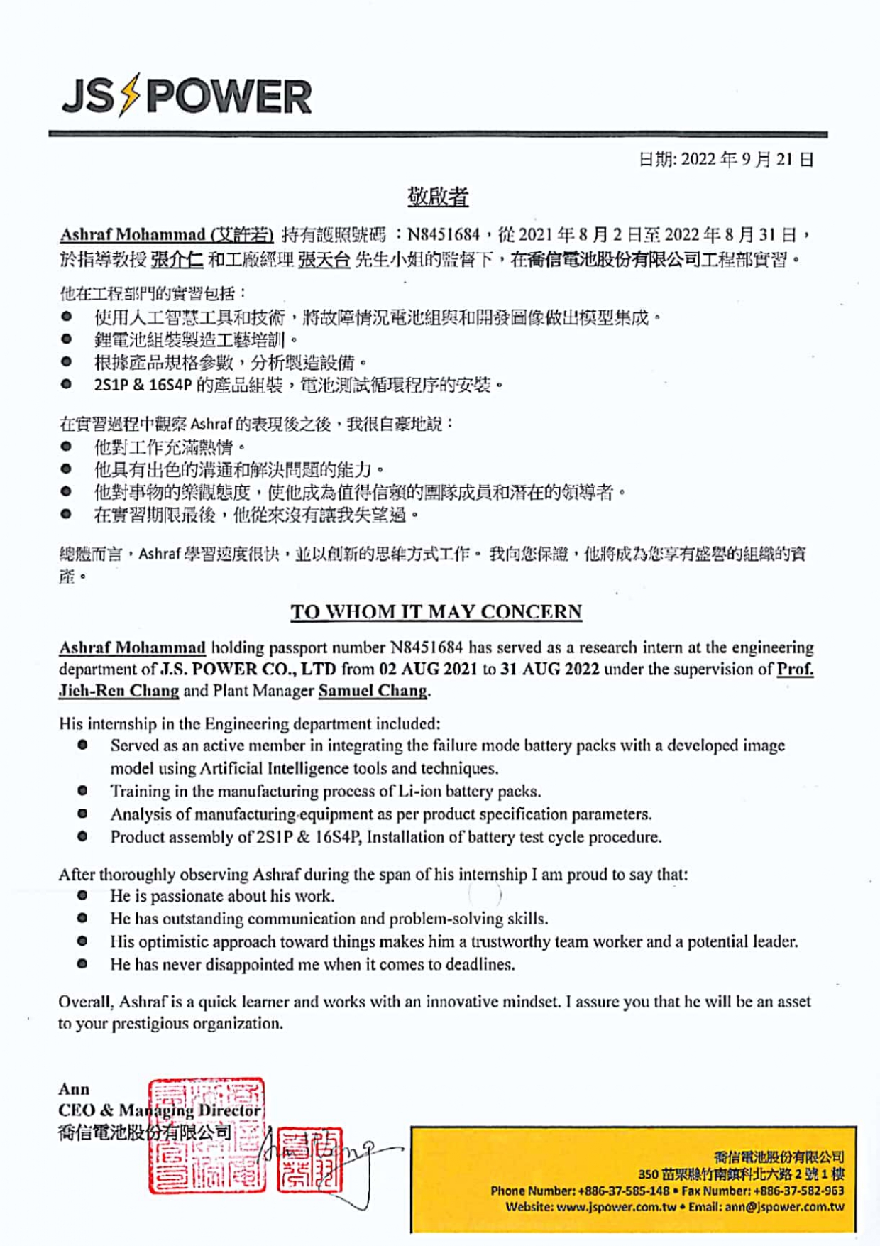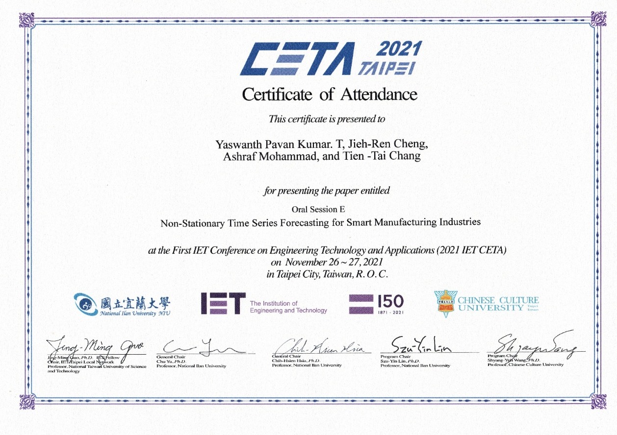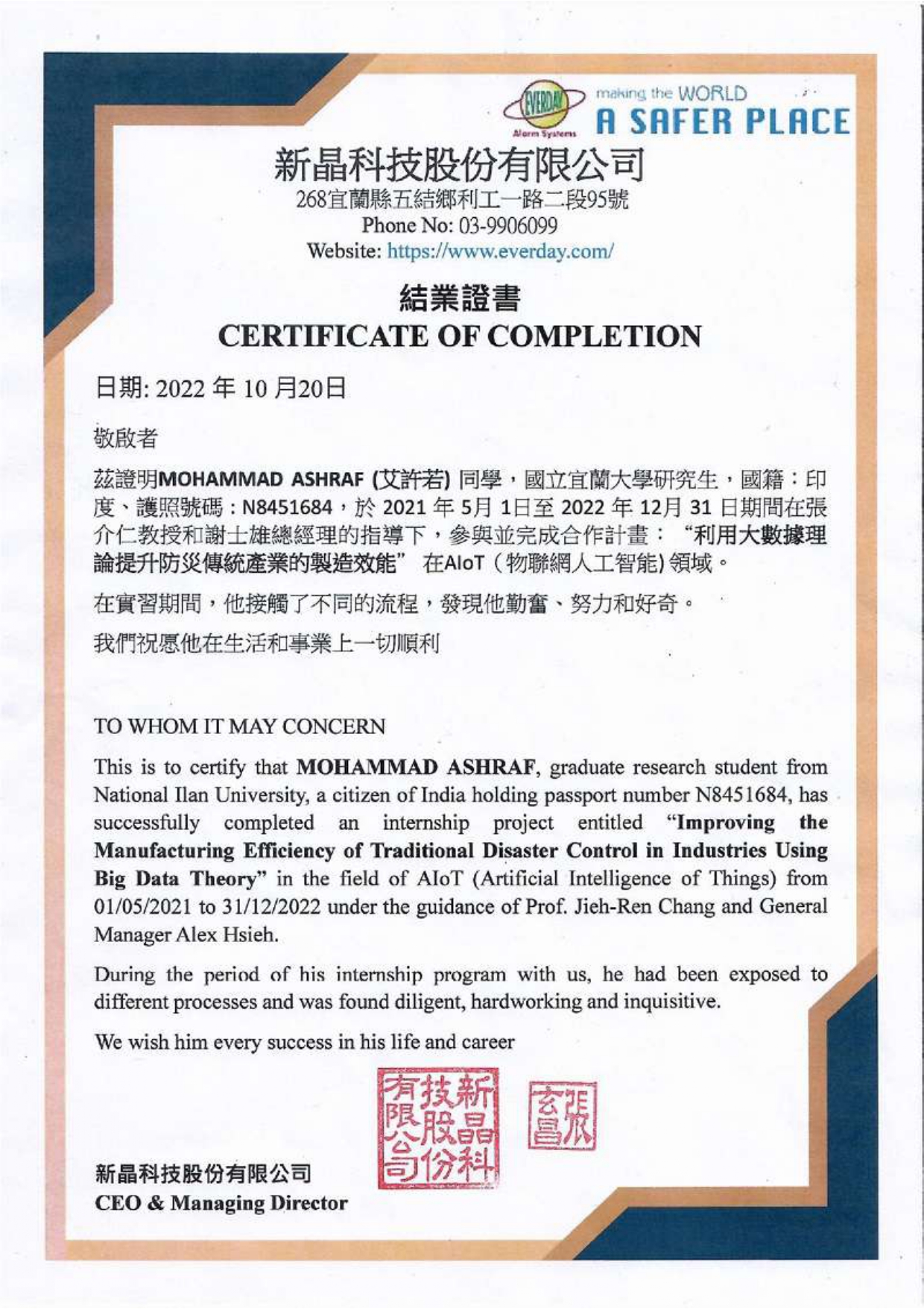 Master of Science, major in artificial intelligence of things graduated from National Ilan University,Taiwan. I was collaborated with two manufacturing companies to apply my research techniques in their manufacturing process.
